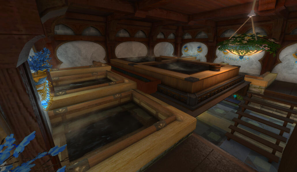 It's a lovely evening and you've stumbled across an estate that was previously, to your knowledge, only a pile of stone rubble. Almost overnight, it's been rebuilt stone by stone. Now it stands tall and proud, right on the border between Mor Dhona and Coerthas. The noble responsible for rebuilding the place has made a point to insist it is open for the public. The estate now boasts an extensive library, outdoor gardens, a brew pub, cocktail bar, an indoor bathhouse, a balcony, a fully equipped workshop, a full private suite, and is located next to Ishgardian hotsprings.(The Ymir Estate is an 21+ RP venue. It is primarily unstaffed, and opens at odd hours. Come make yourself at home! Any room marked with "RP" + the company workshop, are all available for RP use.)
