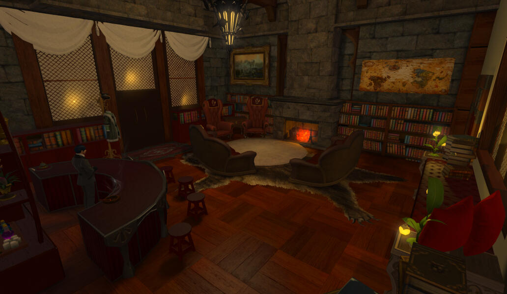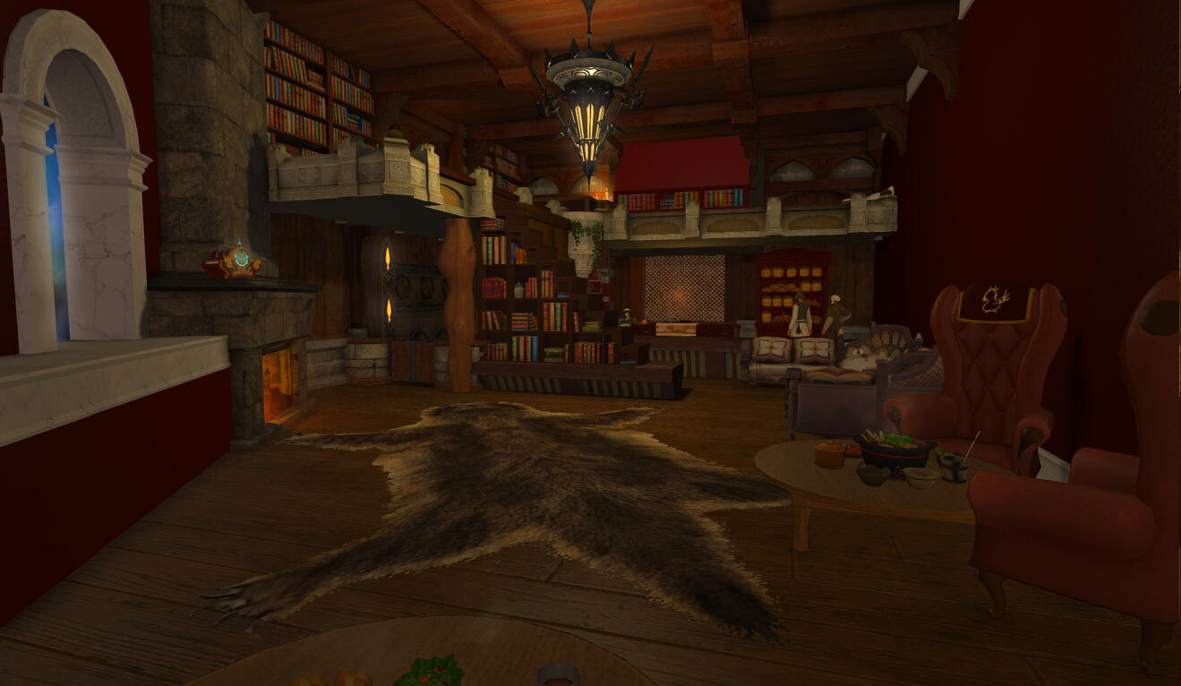 It's a lovely evening and you've stumbled across an estate that was previously, to your knowledge, only a pile of stone rubble. Almost overnight, it's been rebuilt stone by stone. Now it stands tall and proud, right on the border between Mor Dhona and Coerthas. The noble responsible for rebuilding the place has made a point to insist it is open for the public. The estate now boasts an extensive library, outdoor gardens, a brew pub, cocktail bar, an indoor bathhouse, a balcony, a fully equipped workshop, a full private suite, and is located next to Ishgardian hotsprings.(The Ymir Estate is an 21+ RP venue. It is primarily unstaffed, and opens at odd hours. Come make yourself at home! Any room marked with "RP" + the company workshop, are all available for RP use.)